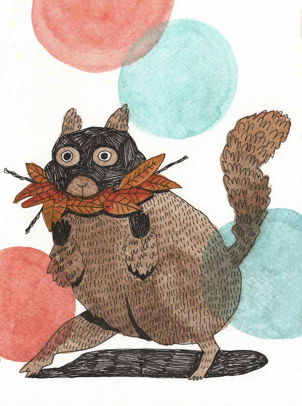 Gouache and ink painting for Peachtober 2025 prompt ‘Leaf’