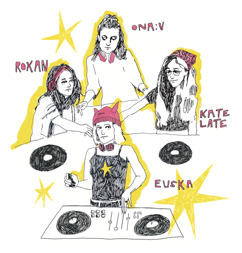 I was commissioned by the Electronic Music Society at the University of Edinburgh to create these promotional pieces. I worked digitally for the poster and used ink for the DJ portraits.