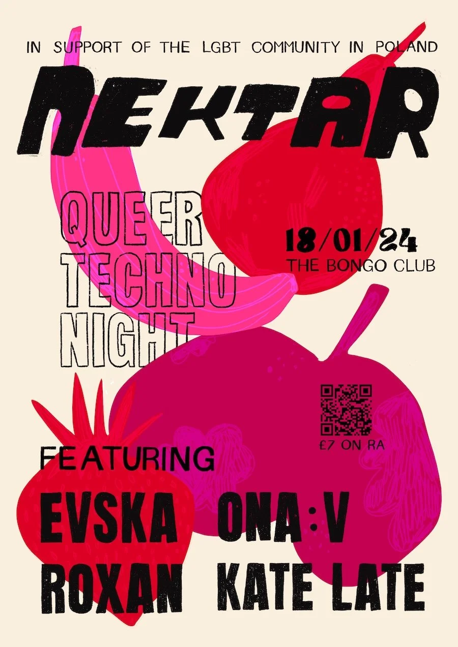 Poster and promotional material for social media created for a queer techno club night in Edinburgh.